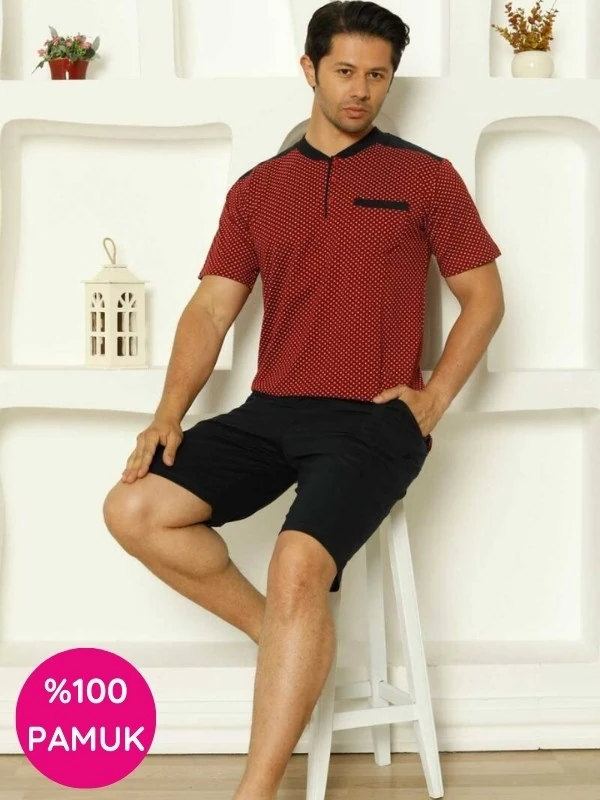 Erkek 3 Düğmeli %100 Pamuk Mevsimlik Uzun Kol Cepli Pijama Takımı